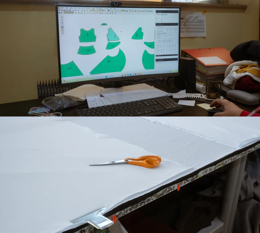 Cięcie materiału realizujemy z dużym naciskiem na powtarzalność i optymalne wykorzystanie surowca. Nasza krojownia łączy standardowe metody warsztatowe z rozwiązaniami cyfrowymi, co pozwala nam precyzyjnie przygotować elementy do dalszego szycia, niezależnie od stopnia skomplikowania wzoru.