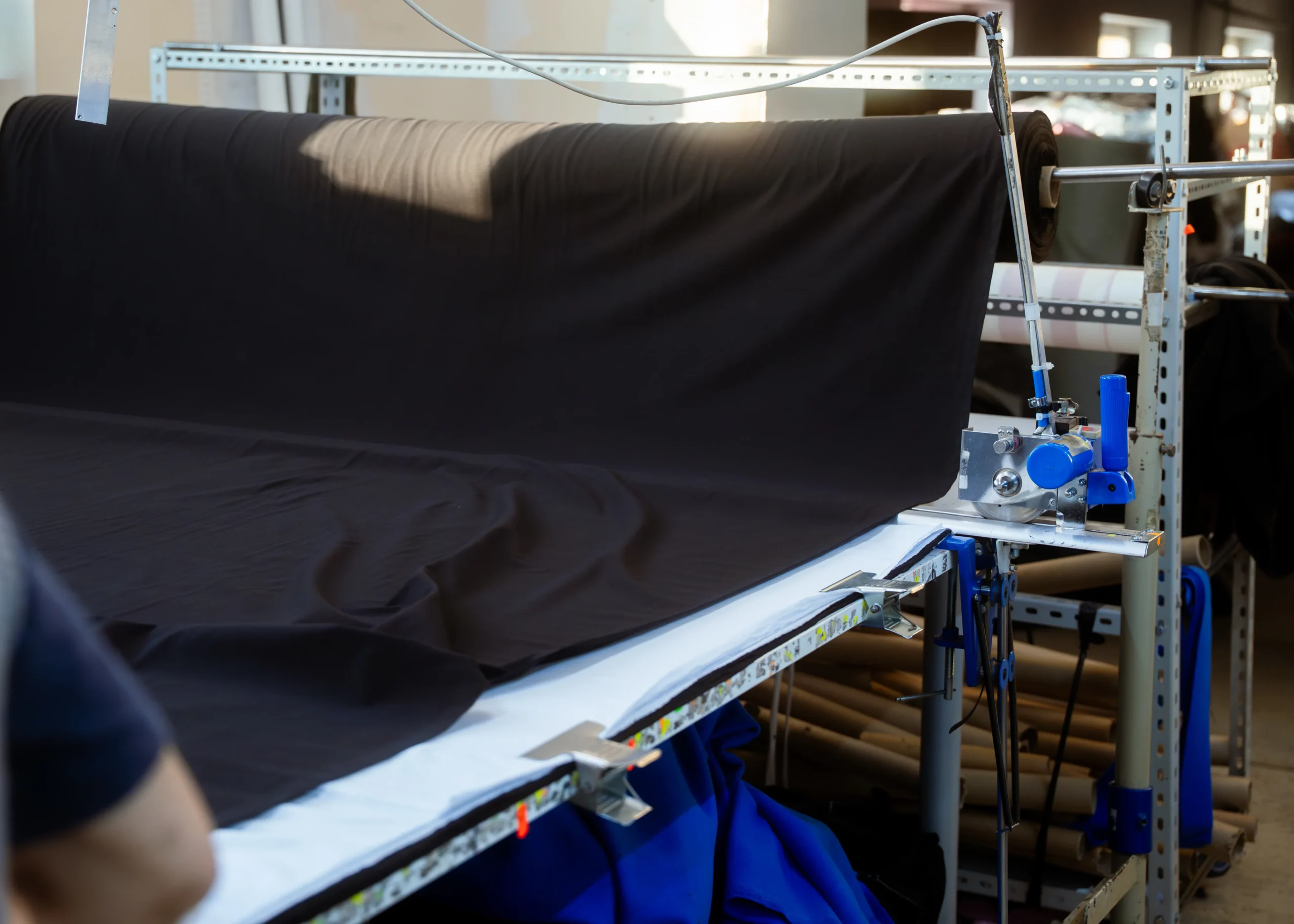 Pracujemy na przemysłowych maszynach szwalniczych i krojczych, które zapewniają precyzję szycia, powtarzalność detali oraz wysoką jakość wykończenia każdego produktu.